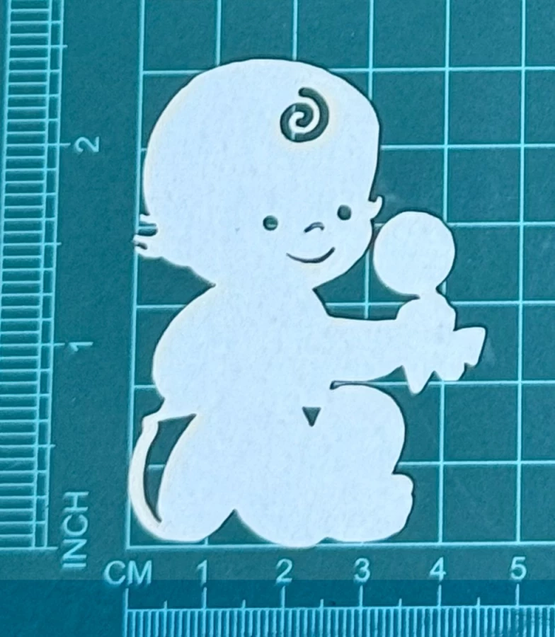 Niemowlak Scrapek - tekturka wycięty laserem z beermaty o grubości 1,5 mm. Wymiary jak na zdjęciu. Kod produktu to: LBA00838