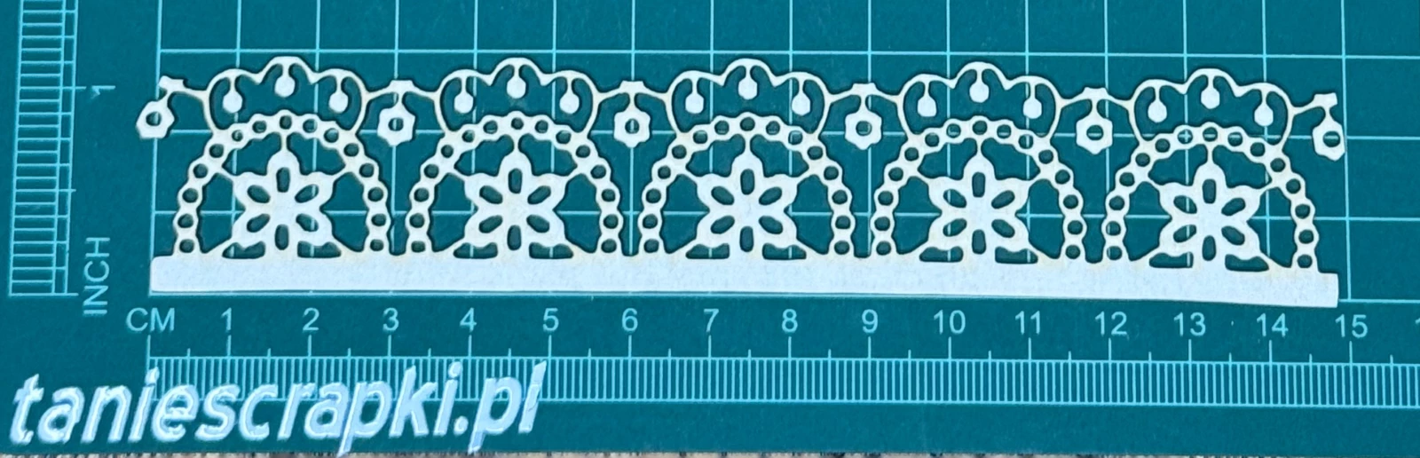 Pasek koronka Scrapek - tekturka wycięty laserem z beermaty o grubości 1,5 mm. Wymiary jak na zdjęciu. Kod produktu to: LBA00207