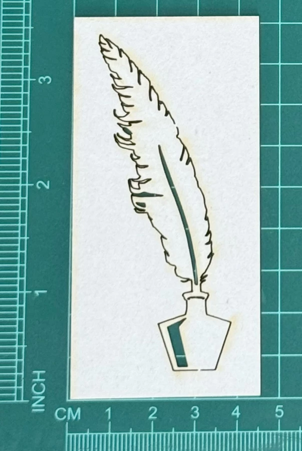 Pióro w kałamarzu Scrapek - tekturka wycięty laserem z beermaty o grubości 1,5 mm. Wymiary jak na zdjęciu. Kod produktu to: LBA00494