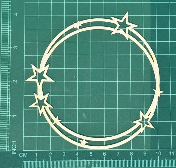 Ramka Koło z gwiazdkami Scrapek - tekturka wycięty laserem z beermaty o grubości 1,5 mm. Wymiary jak na zdjęciu. Kod produktu to: LBA00573