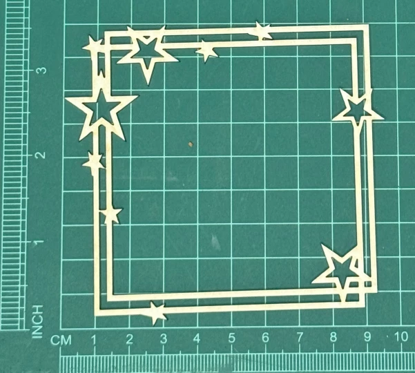 Ramka kwadrat z gwiazdkami Scrapek - tekturka wycięty laserem z beermaty o grubości 1,5 mm. Wymiary jak na zdjęciu. Kod produktu to: LBA00574