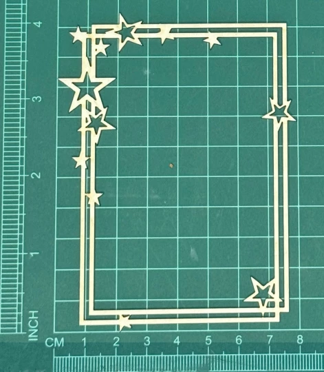 Ramka prostokąt z gwiazdkami Scrapek - tekturka wycięty laserem z beermaty o grubości 1,5 mm. Wymiary jak na zdjęciu. Kod produktu to: LBA00572