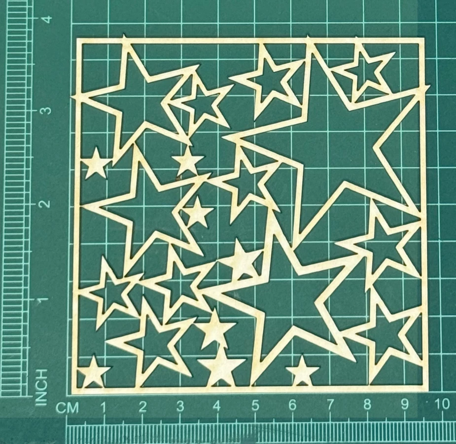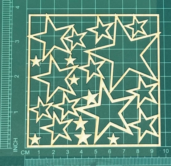 Ramka z gwiazdkami Scrapek - tekturka wycięty laserem z beermaty o grubości 1,5 mm. Wymiary jak na zdjęciu. Kod produktu to: LBA00575
