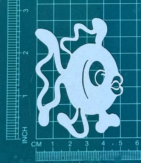 Rybka Scrapek - tekturka wycięty laserem z beermaty o grubości 1,5 mm. Wymiary jak na zdjęciu. Kod produktu to: LBA00988
