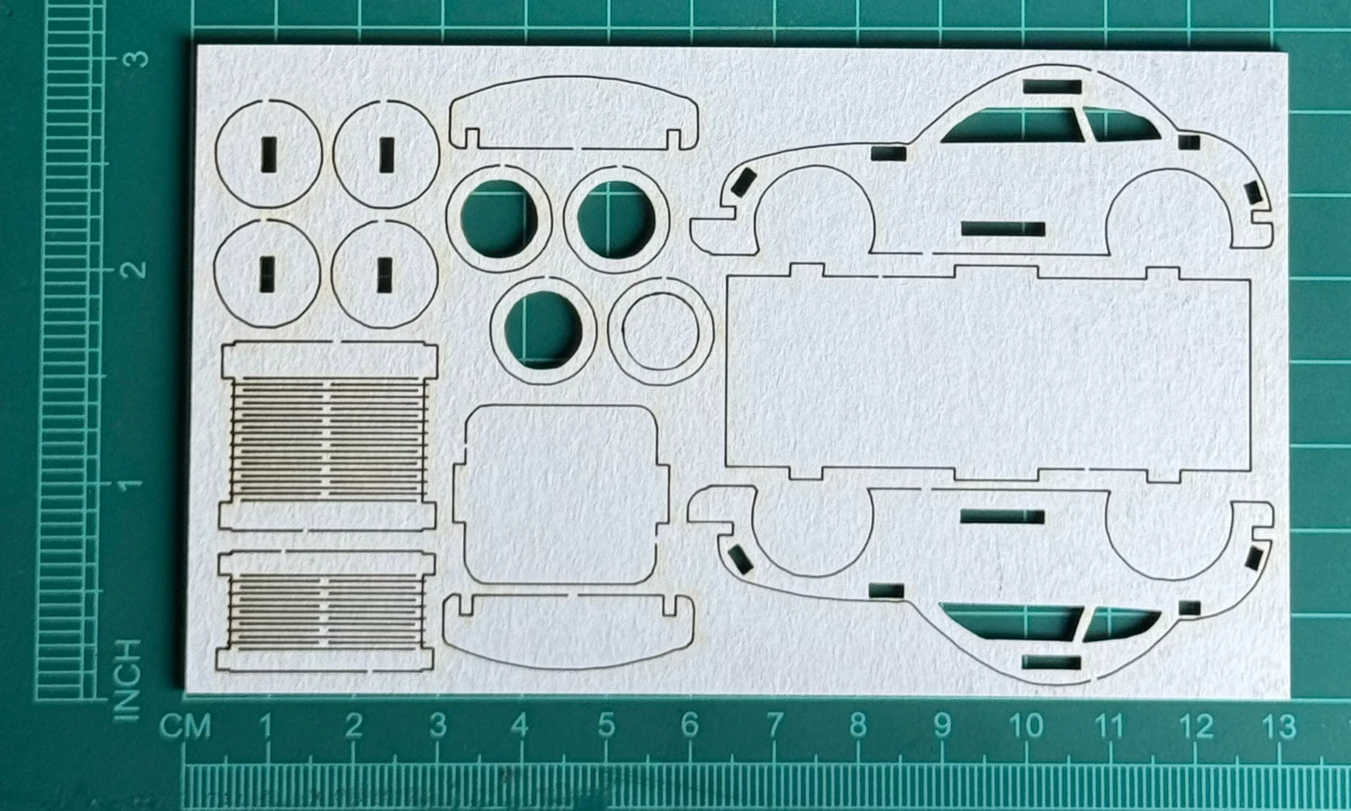 Samochód Scrapek - tekturka wycięty laserem z beermaty o grubości 1,5 mm. Wymiary jak na zdjęciu. Kod produktu to: LBA01280