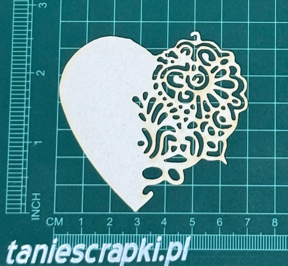Serce ażurowe Scrapek - tekturka wycięty laserem z beermaty o grubości 1,5 mm. Wymiary jak na zdjęciu. Kod produktu to: LBA00035