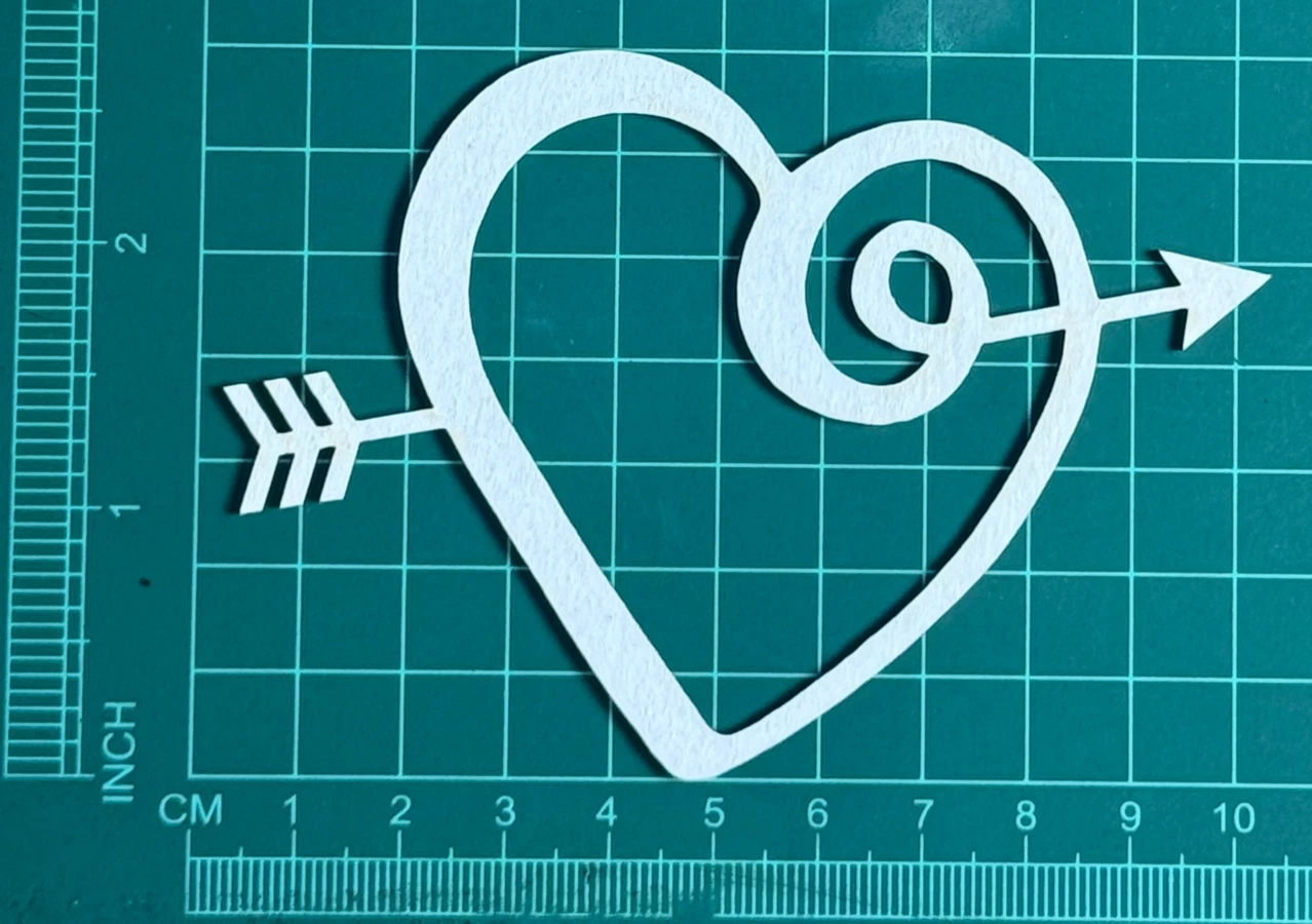 Serduszko przebite strzałą Scrapek - tekturka wycięty laserem z beermaty o grubości 1,5 mm. Wymiary jak na zdjęciu. Kod produktu to: LBA01232