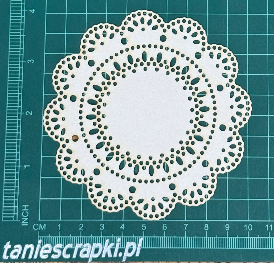 Serwetka Scrapek - tekturka wycięty laserem z beermaty o grubości 1,5 mm. Wymiary jak na zdjęciu. Kod produktu to: LBA00219
