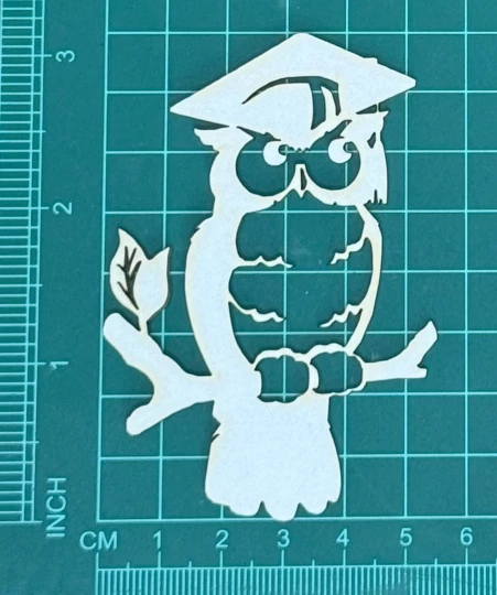 Sowa w Birecie Scrapek - tekturka wycięty laserem z beermaty o grubości 1,5 mm. Wymiary jak na zdjęciu. Kod produktu to: LBA00491
