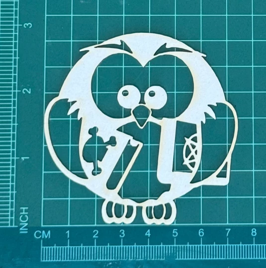 Sówka Scrapek - tekturka wycięty laserem z beermaty o grubości 1,5 mm. Wymiary jak na zdjęciu. Kod produktu to: LBA00528
