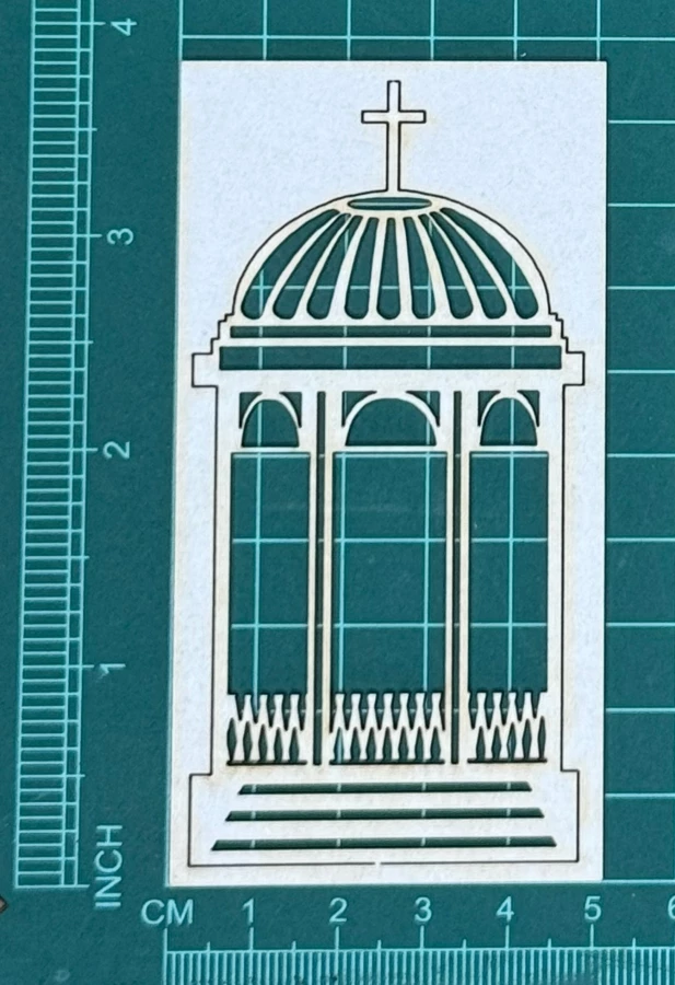 Świątynia Scrapek - tekturka wycięty laserem z beermaty o grubości 1,5 mm. Wymiary jak na zdjęciu. Kod produktu to: LBA00933