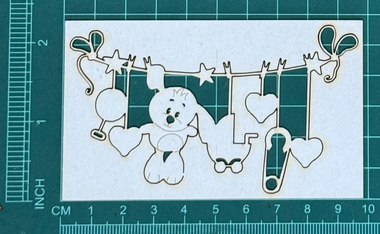Sznurek z zabawkami Scrapek - tekturka wycięty laserem z beermaty o grubości 1,5 mm. Wymiary jak na zdjęciu. Kod produktu to: LBA00914