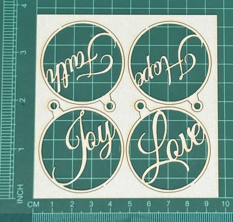 Zestaw bombek z napisami Scrapek - tekturka wycięty laserem z beermaty o grubości 1,5 mm. Wymiary jak na zdjęciu. Kod produktu to: LBA00626
