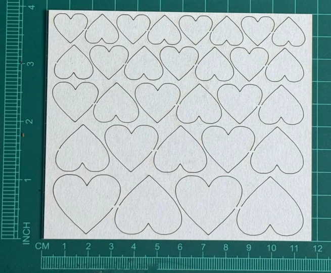 Zestaw serduszek Scrapek - tekturka wycięty laserem z beermaty o grubości 1,5 mm. Wymiary jak na zdjęciu. Kod produktu to: LBA01227