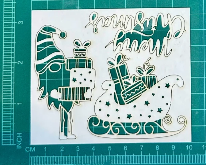 Zestaw świąteczny krasnal sanie Scrapek - tekturka wycięty laserem z beermaty o grubości 1,5 mm. Wymiary jak na zdjęciu. Kod produktu to: LBA01050