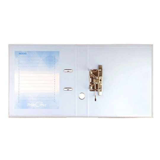 - Wewnątrz biała wyklejka papierowa: Dodaje estetyki i elegancji wnętrzu segregatora.