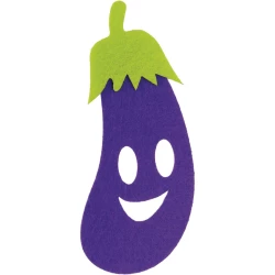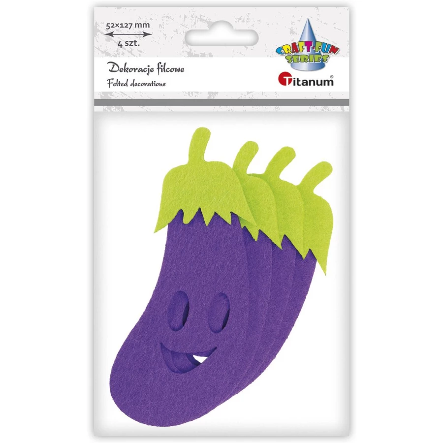Filcowe bakłażany 3D, wymiary: 52 x 127 mm, uśmiechnięte, fioletowo-zielone. 4 sztuki.