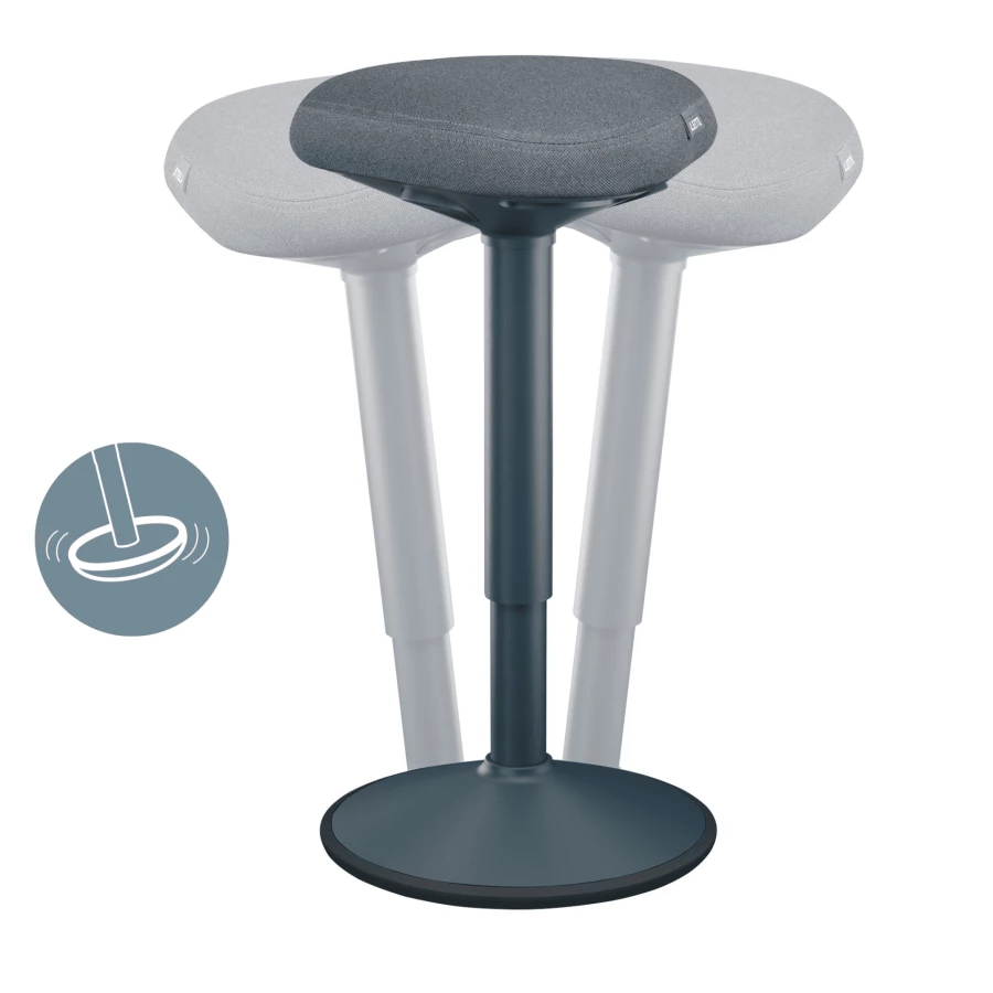 Ten ergonomiczny stolek z regulacją wysokości, opracowany zostal we wspólpracy z Instytutem Zdrowia i Ergonomii (IGR) w celu zapewnienia aktywności podczas korzystania z biurka do pracy w pozycji stojącej, przy wysokich stolach konferencyjnych lub blacie kuchennym.