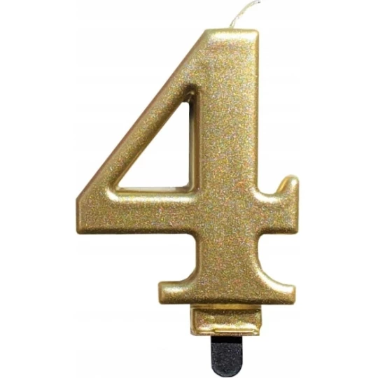 ŚWIECZKA urodzinowa CYFERKA 4 metaliczna zlota GO PARTY
