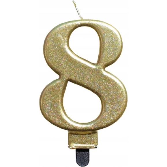 ŚWIECZKA urodzinowa CYFERKA 8 metaliczna zlota GO PARTY