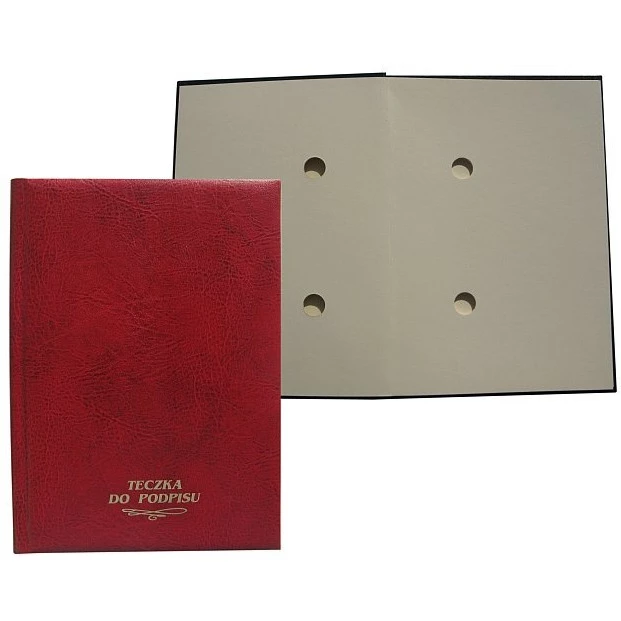 Teczka do podpisu Warta_- okładka twarda, oklejana_- grzbiet kryty_- blok z kartonu barwionego zawiera 10 kart z 2 otworami_- polecamy wykonanie teczek z logo firmy w innej kolorystyce i liczbie kartek_- jednostka sprzedaży 1 sztuka