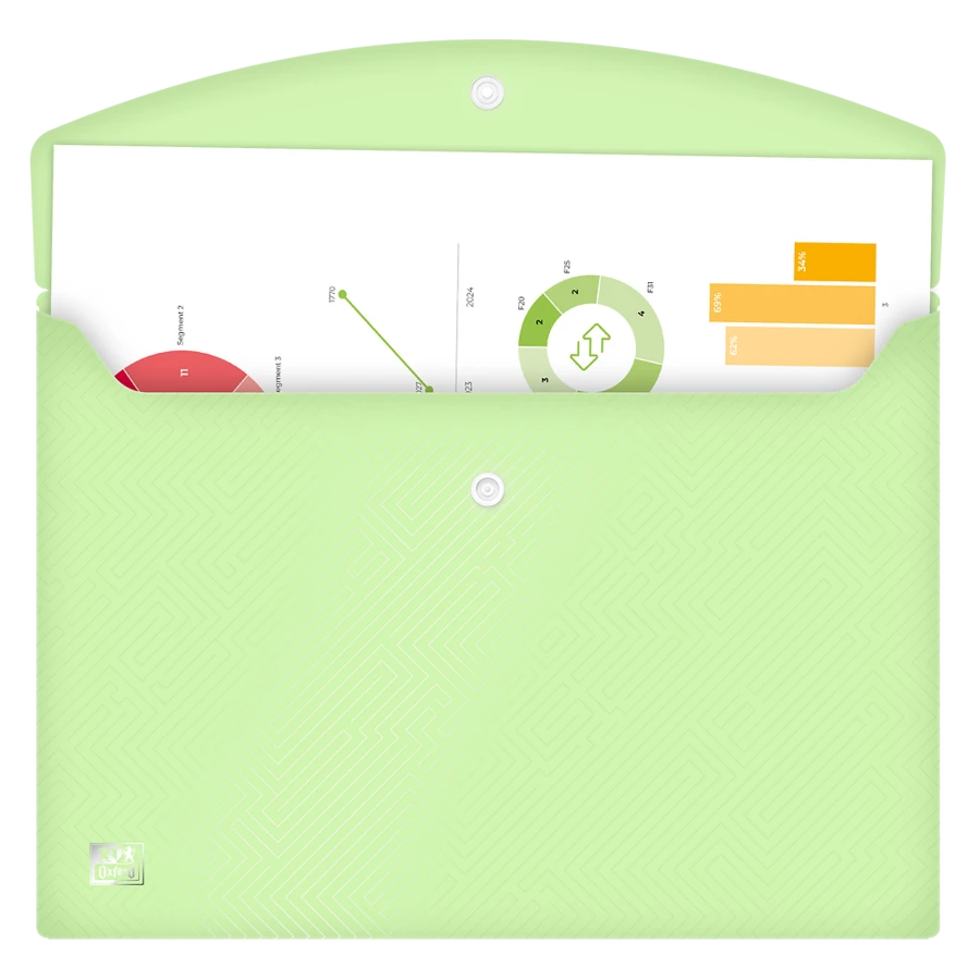 Poznaj teczkę kopertową Oxford Urban – stylowe i praktyczne rozwiązanie, które doda lekkości każdej przestrzeni biurowej. Wykonana z trwałego polipropylenu, teczka urzeka pastelowymi odcieniami oraz subtelnym tłoczeniem przypominającym labirynt, które nadaje jej wyjątkowego charakteru i nowoczesnego wyglądu. Idealna do przechowywania dokumentów formatu A4, teczka Oxford Urban zapewnia bezpieczne zamknięcie na zatrzask, dzięki czemu Twoje dokumenty zawsze pozostają na swoim miejscu. Elegancka kolorystyka i precyzyjne wykończenie sprawiają, że produkt ten idealnie komponuje się z innymi elementami linii Urban, tworząc spójną i estetyczną całość. Wprowadź do swojego biura przyjemny, pastelowy akcent, który doda elegancji i wprowadzi odrobinę spokoju do codziennej organizacji.