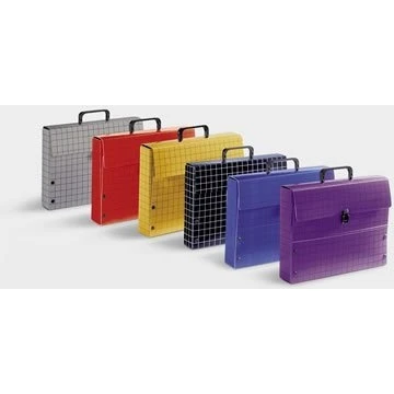 _wykonana z tektury o grubości 1 mm__dwustronnie barwiona, pokryta folią polipropylenową__do formatu A4__szerokość 60mm__posiada nadruk "krata" wykonany metodą sitodruku__zamykana na zamek z tworzywa__wyposażona w rączkę z tworzywa