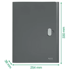 Wykonana z plastiku pochodzącego w 80% z recyklingu, w 100% nadaje się do ponownego przetworzenia; posiada certyfikat środowiskowy Blue Angel. Ta solidna teczka jest niezwykle praktyczna, zapewnia użytkowanie przez długie lata i doskonale pasuje do innych produktów z kolekcji Leitz Recycle.