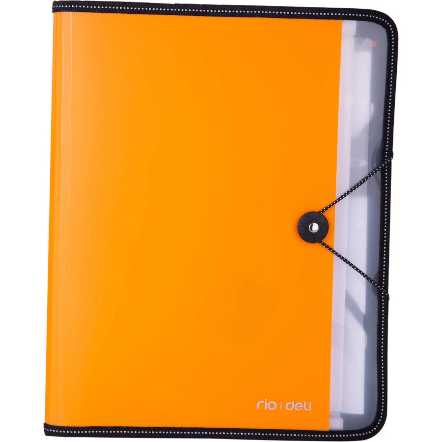 Teczka A4 Deli 38965_ORANGE z kolekcji RIO to praktyczne połączenie teczki indeksującej i organizera, idealne dla studentów, przedsiębiorców i osób, które cenią porządek w swoich dokumentach. Wykonana z wytrzymałego materiału PP (polipropylen), teczka jest odporna na uszkodzenia, gwarantując długotrwałe użytkowanie.
