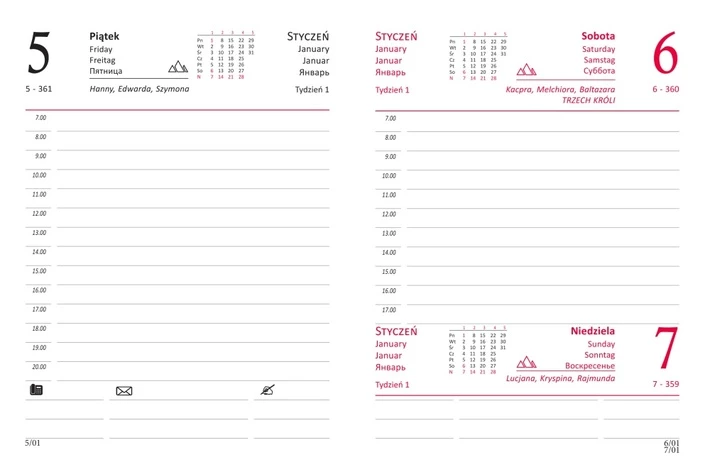 - Wymiary kalendarza: 10,5 x 14 cm