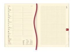 Terminarz wyposazony jest w skóropodobną oprawe Vivella , która nie tylko nadaje mu elegancji, ale równiez zwieksza trwalośc i odpornośc na uszkodzenia . Dodatkowo, zawiera tasiemke , która pozwoli Ci latwo znaleLc aktualną strone.
