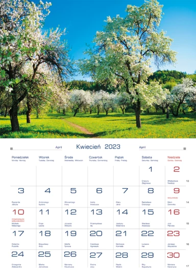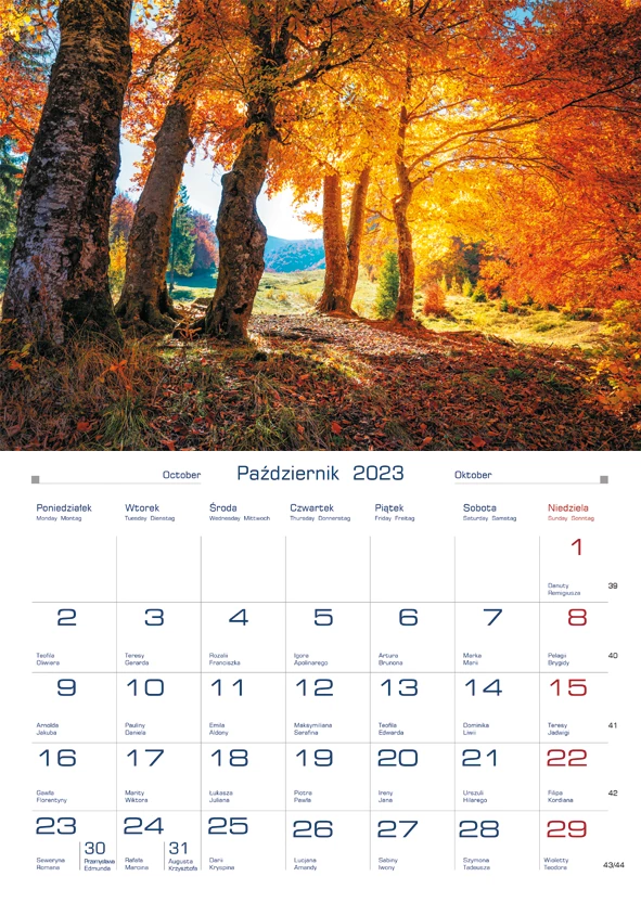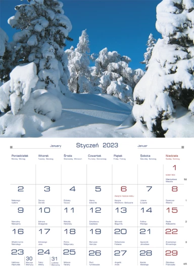 - Uklad kalendarium: 1 miesiąc - 1 rozkladówka