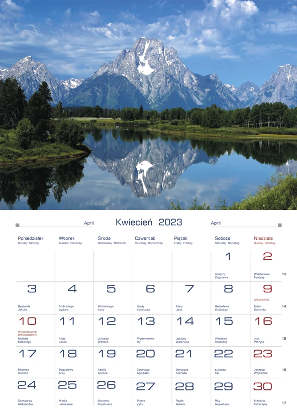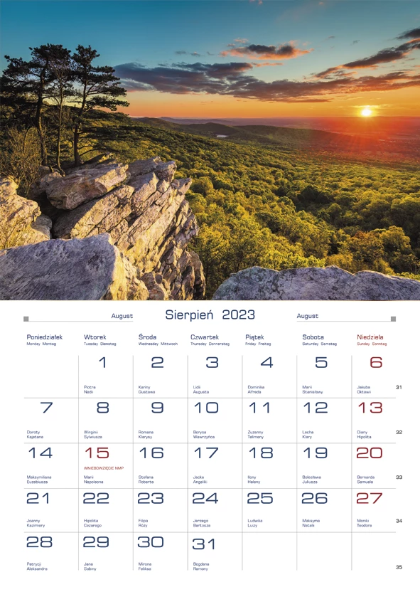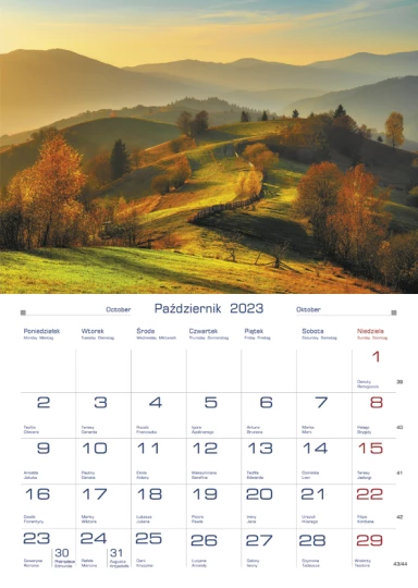 - Uklad kalendarium: 1 miesiąc - 1 rozkladówka