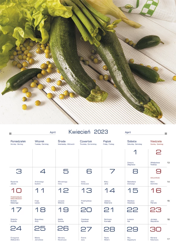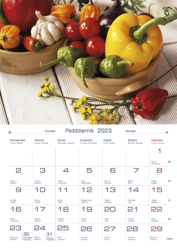 - Uklad kalendarium: 1 miesiąc - 1 rozkladówka