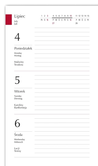- Uklad kalendarium: 1 tydzien - 2 strony