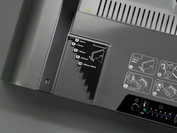 - Może oprawiać dokumenty o grubości do 300 kartek A4 (80 g)