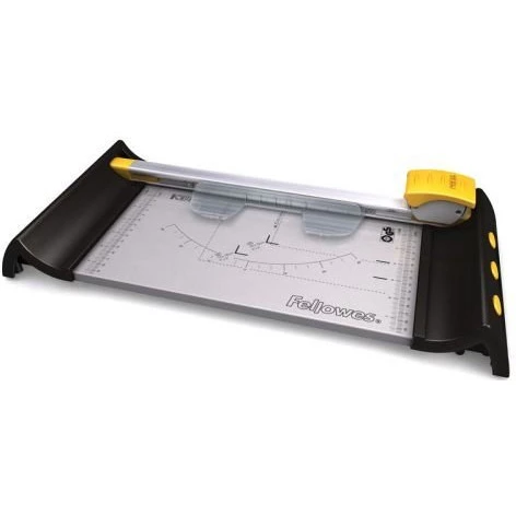 Zawiera bezpieczną w uzyciu unikalną kasete Fellowes SafeCut z ostrzem ze stali nierdzewnej, ostrze pozostaje caly czas w oslonie kasety, jest wysuwane tylko w momencie ciecia.