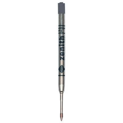 Wklad Zenith - 4 (20) Metalowy wklad wielkopojemny, dostepny w trzech kolorach tuszu: niebieskim, czarnym, czerwonym. Jest to tusz dokumentalny, odporny na dzialanie światla i wody. Średnica kulki wkladu wynosi: 0,8 mm, szerokośc linii pisania: 0,5 0,7 mm, dlugośc linii pisania: 3 500 m. Koncówka wkladu wykonana jest z mosiądzu wysokoniklowego, tzw. nowe srebro, i wyposazona w kulke z weglika wolframu TC, co podnosi zywotnośc koncówki, dając równomiernośc parametrów pisania w trakcie calego okresu eksploatacji. Jednostka sprzedazy 1 opakowanie