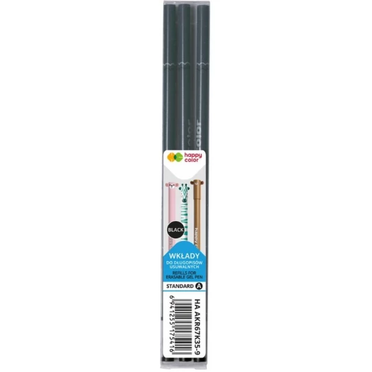 Wkłady do długopisu usuwalnego A 0.5mm czarny (3) AKR67K35-9 Happy Color