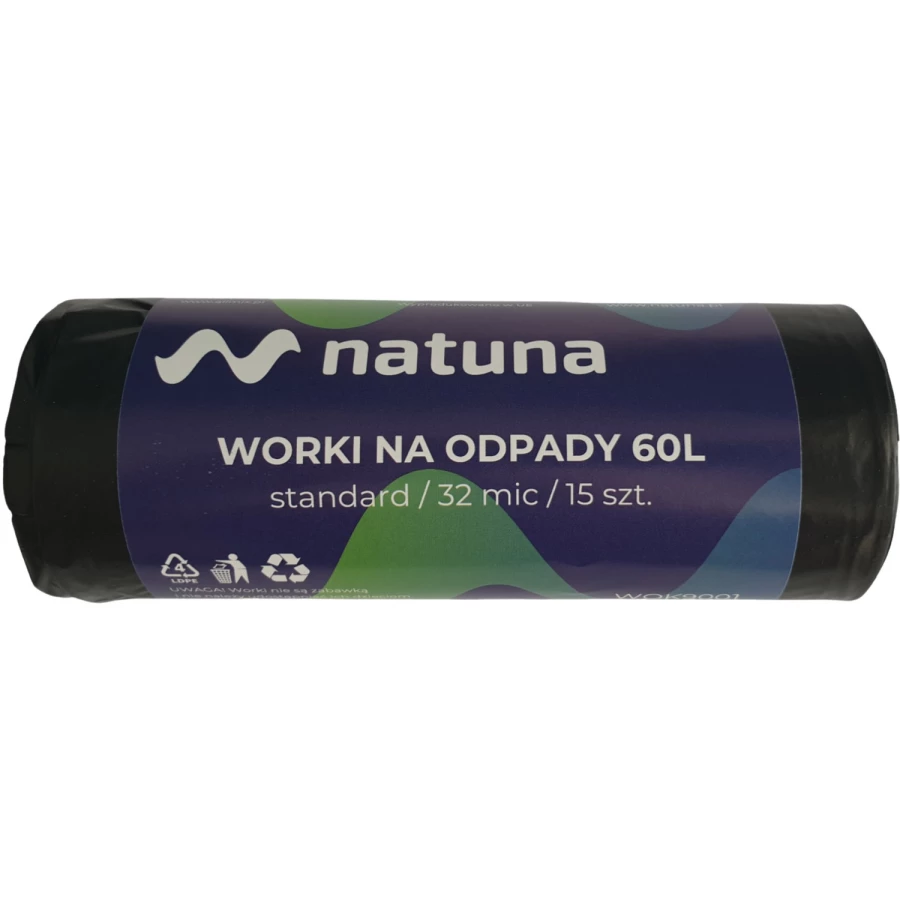Worki na śmieci NATUNA 60L standard (15szt) 32mic LDPE