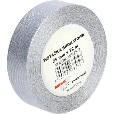 Wstążka brokatowa srebrna 25mm WB25-2 BREWIS