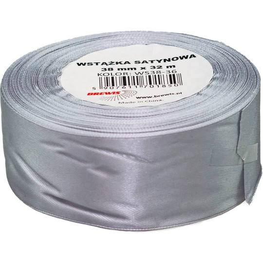 Wstążka satynowa 38mm/32 srebrna BREWIS