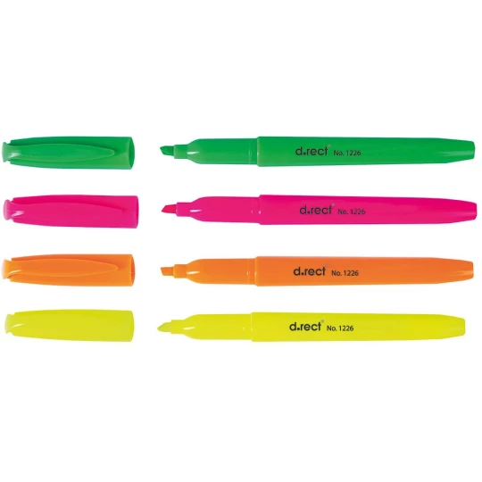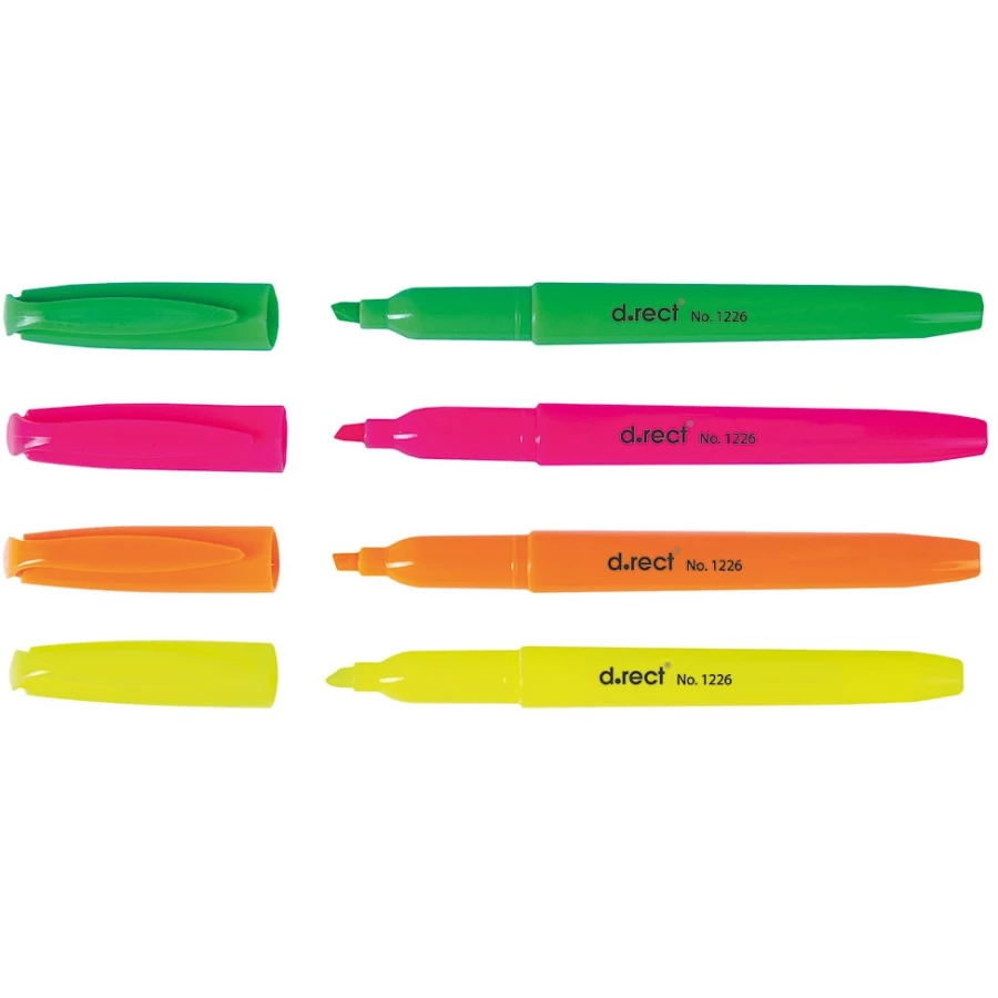 Prosty zakreślacz w kształcie zbliżonym do długopisu, zapewnia wygodny uchwyt, nawet w trakcie dłuższej pracy. Posiada jaskrawy tusz na bazie wody, umożliwiający regenerację po zamknięciu skuwki. Ścięta końcówka wykonuje linię szerokości 1-5mm umożliwiając zakreślanie tekstu o różnej wielkości. Klips na boku skuwki, redukuje ryzyko zagubienia zakreślacza.