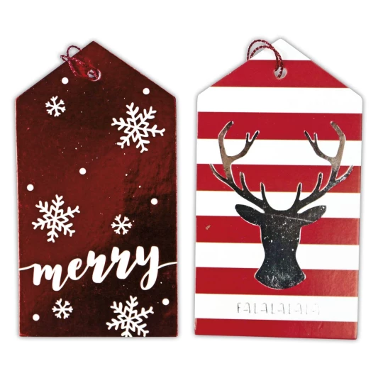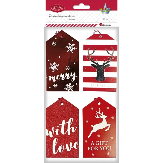 Zawieszki prezentowe Boże Narodzenie 20szt. 60X110mm tonacja czerwona 4 wzory 414526 TITANUM