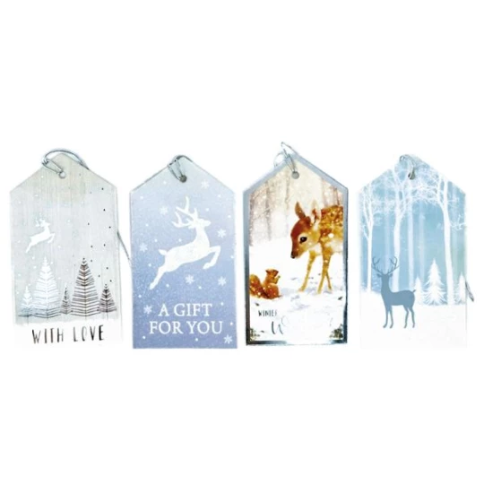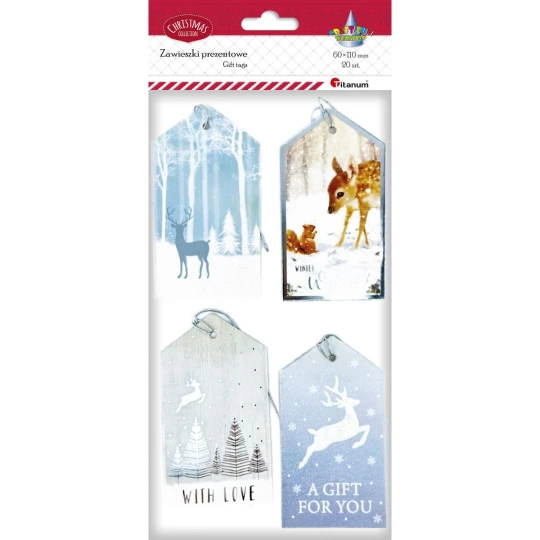 Zawieszki prezentowe Boże Narodzenie 20szt. 60x110mm tonacja srebrna 4 wzory 414524 TITANUM