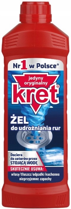 KRET Żel do udrożniania rur to skuteczny środek przeznaczony do chemicznego udrażniania rur i syfonów w instalacjach kanalizacyjnych. Dzięki specjalnie opracowanej formule, żel przenika przez stojącą wodę i efektywnie rozpuszcza różnego rodzaju zanieczyszczenia, takie jak tłuszcz, włosy, papier, wata czy odpadki kuchenne. Produkt idealnie nadaje się do stosowania zarówno w kuchni, jak i łazience, eliminując nieprzyjemne zapachy oraz zabezpieczając przed ponownym zatkaniem.