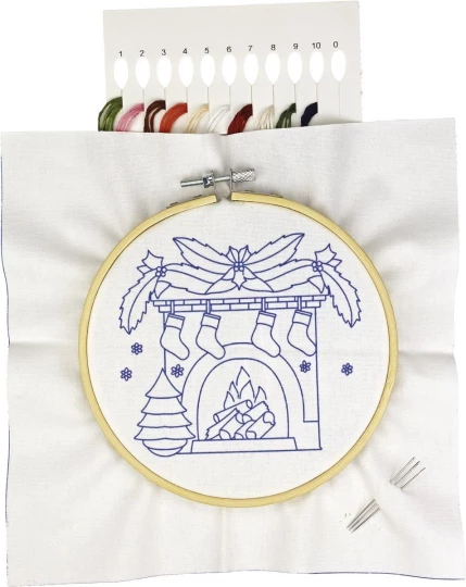 - Gotowy zestaw do haftowania, zawierający: tkaninę 24x24 cm ze szkicem wzoru, tamborek o średnicy roboczej 15 cm, zestaw mulin, 3 igły, instrukcję w języku polskim.