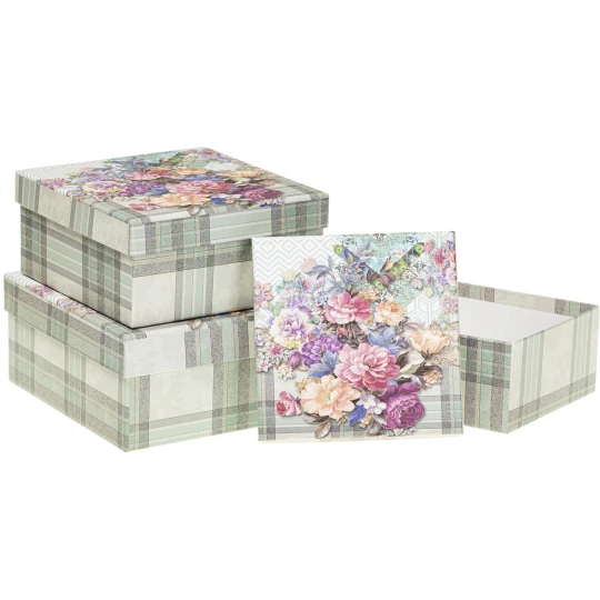 Zestaw pudełek ozdobnych KWADRAT WRZOS/BLUE (3szt) ROZETTE
