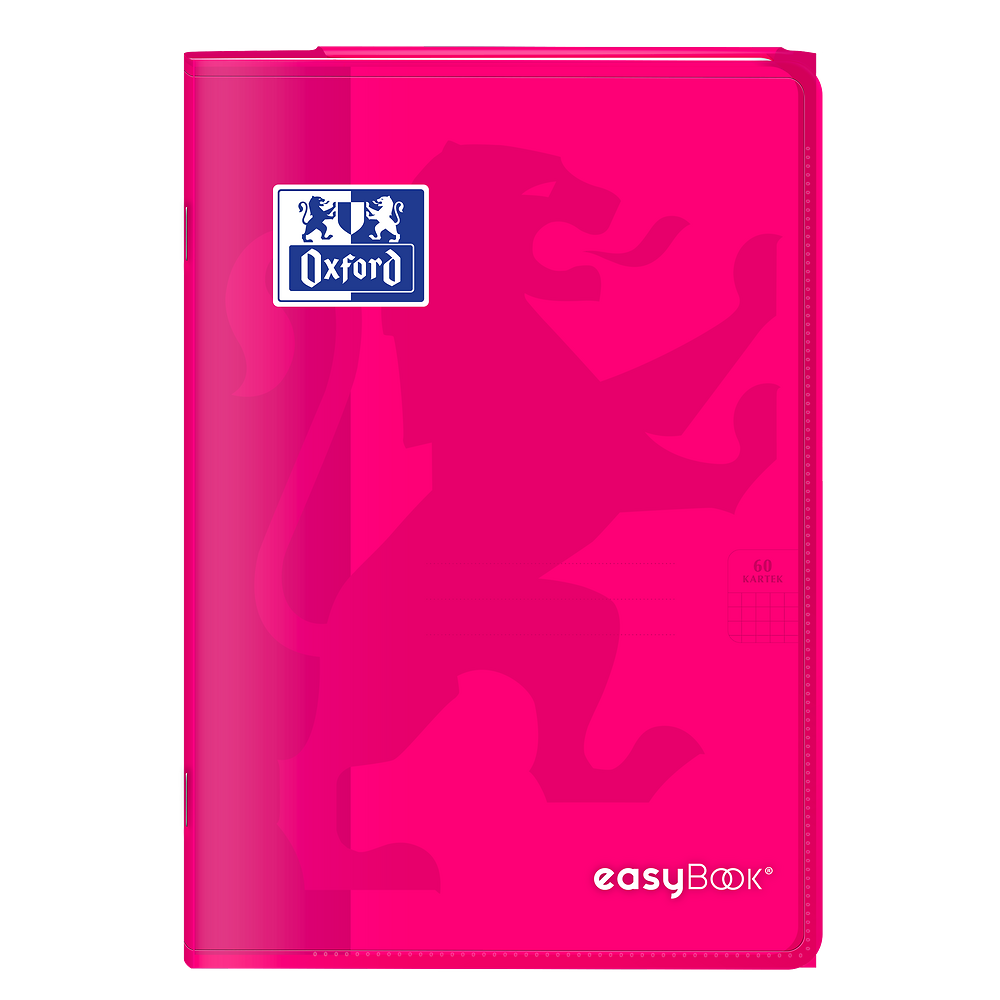 Kolekcja Easybook to zeszyty z półprzezroczystą, trwałą polipropylenową okładką oraz przedstawionym wizerunkiem lwa. Na przodzie zeszytu bardzo praktyczna kieszeń na luźne kartki, natomiast na końcu zeszytu teczka na dokumenty, której skrzydło służy również jako zakładka. Śnieżnobiały i idealnie gładki papier Optik Paper+ sprawi, że pisanie w zeszycie będzie przyjemnością.