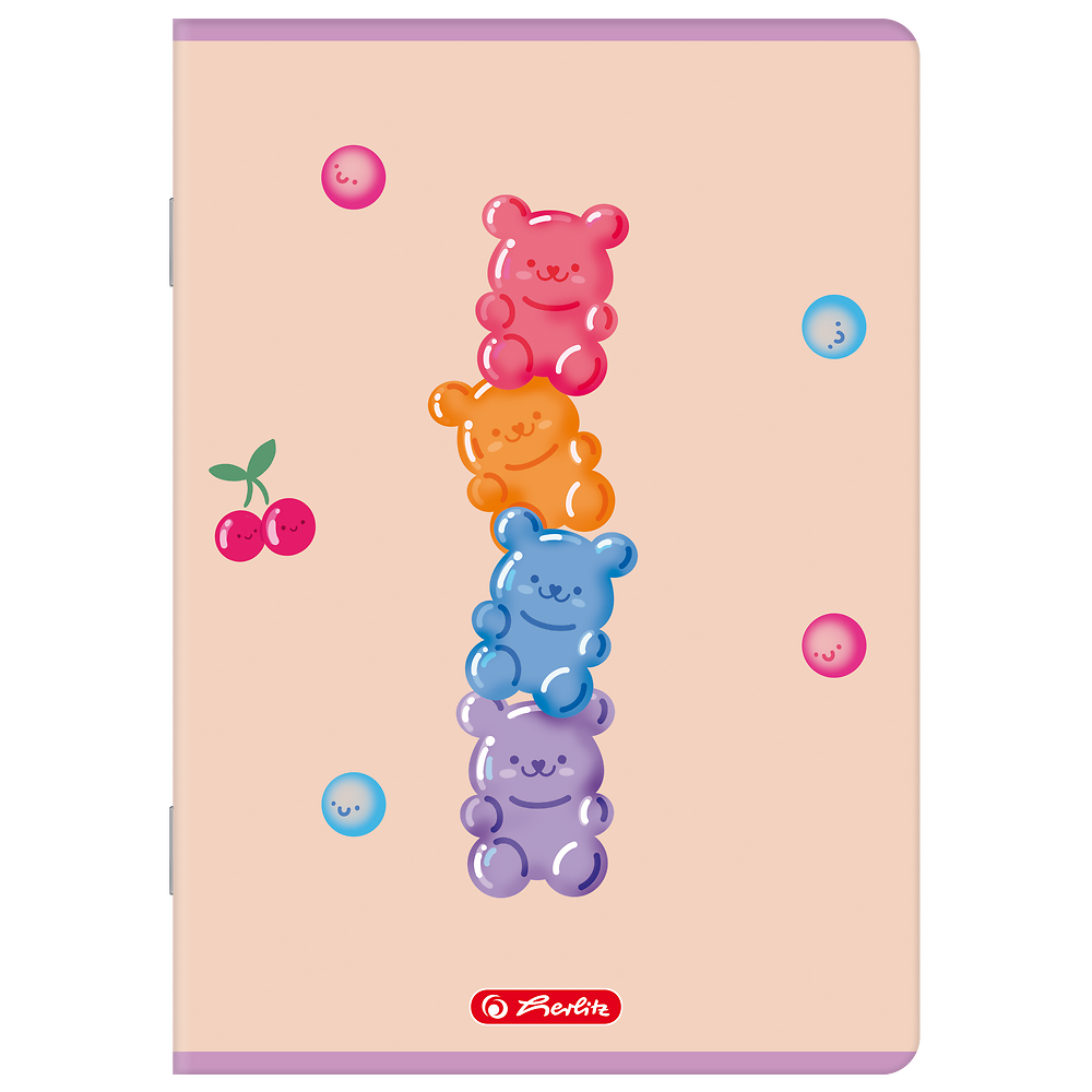 - Kolorowe, błyszczące okładki z motywami żelkowych misiów wprowadzają radość i pozytywną energię do codziennej nauki